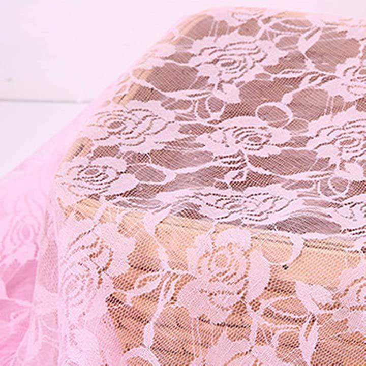 ・さらりと肌触りの良いレース 生地 カラー:ピンク(桜色) 長さ:約2mx幅1.5m 重量:約150g (1m2約50g) 素材:ポリエステル *手動計測の為長さに±数cmの誤差が有ります。