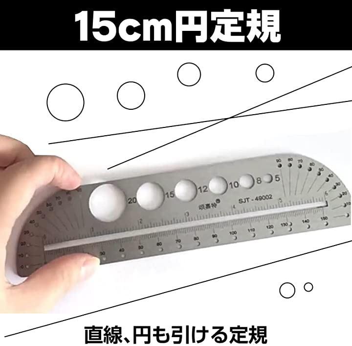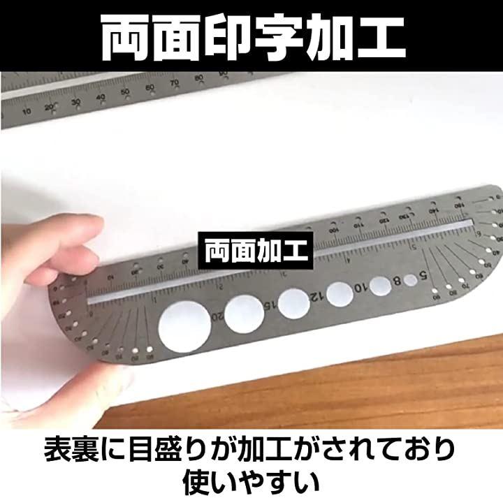 Famimueno円定規テンプレートステンレス製図角度計文房具DIY便利ものさし(シルバーカラー,ステンレス)
