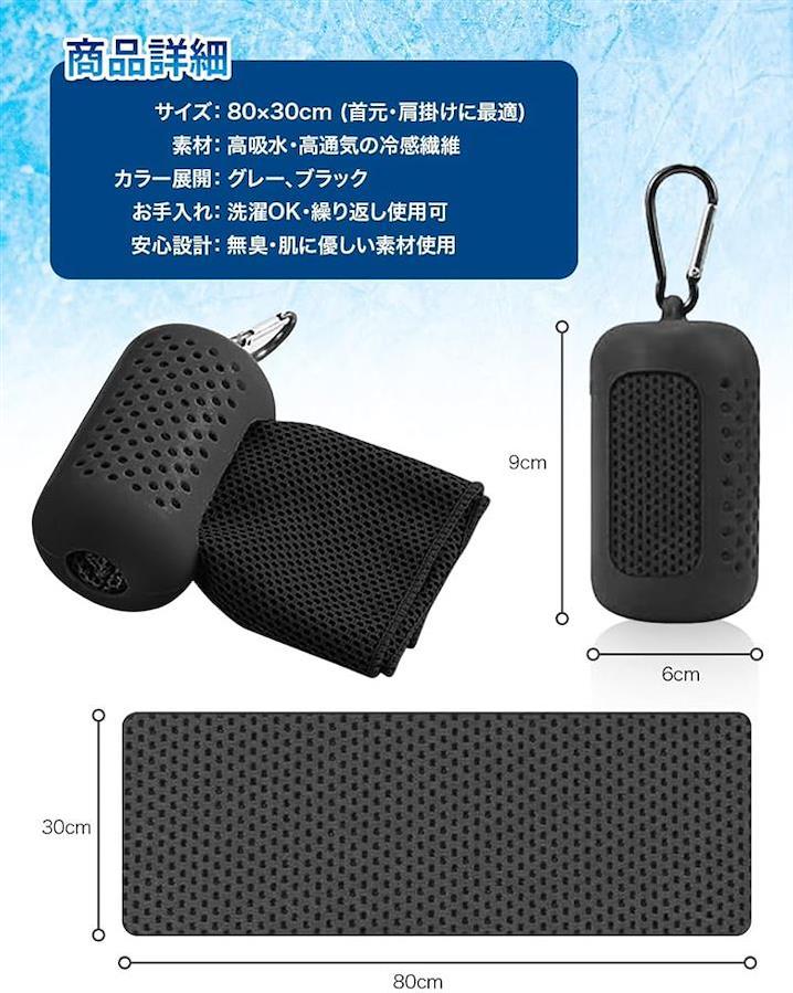サイズは80x30cmで首に巻きやすく、持ち運びに便利なシリコンケース付き。