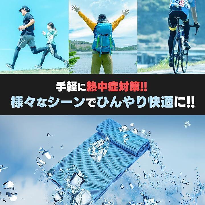 タオルは冷感生地を採用し、水や汗に反応してひんやりとした感触が持続します。