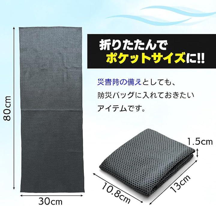30cmx80cmと首にかけやすいサイズ感で、スポーツや屋外作業時も快適に使用可能です。