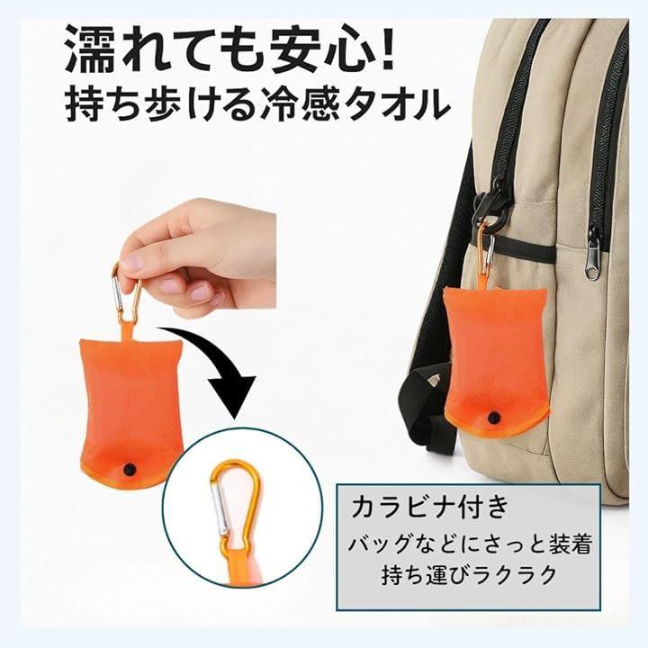 「カラビナ付きケースで携帯ラクラク」タオルは濡れたまま専用ケースに収納でき、バッグやリュックに簡単装着。