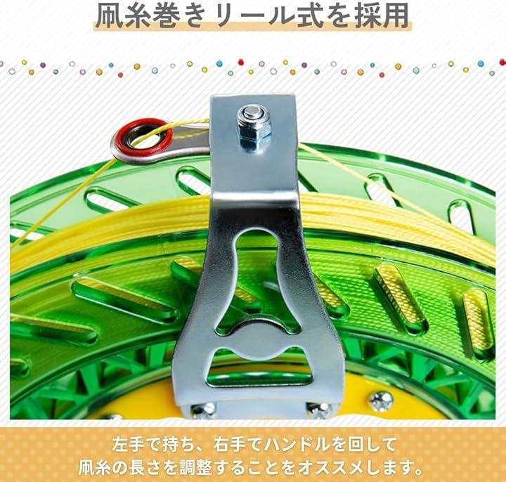 「凧糸巻きリール式」左手で持ち、右手でハンドルを回して凧糸の長さを調整することをオススメします。