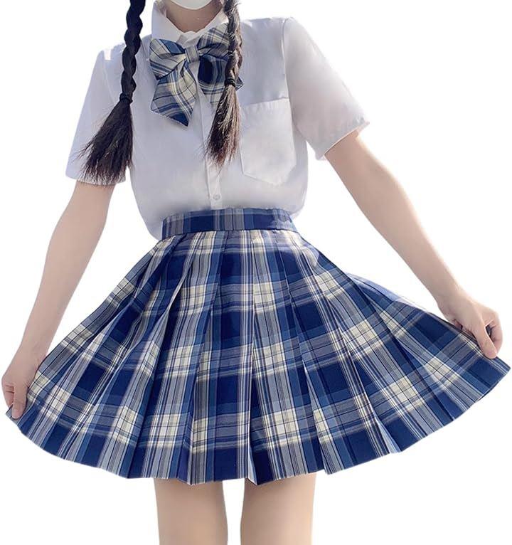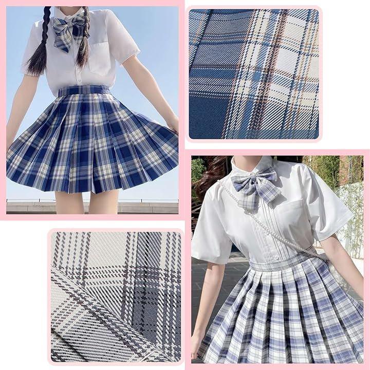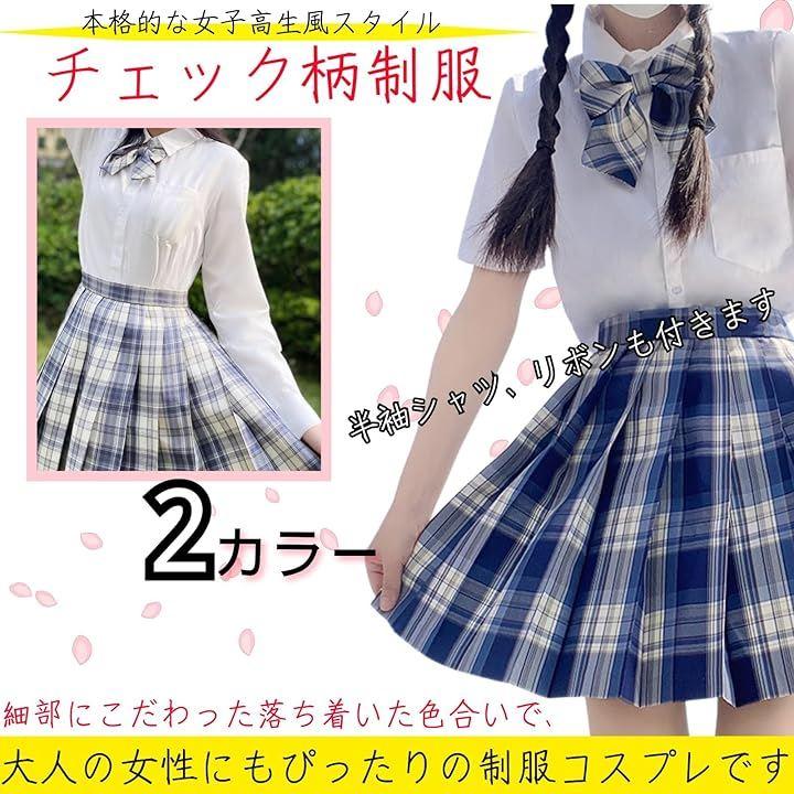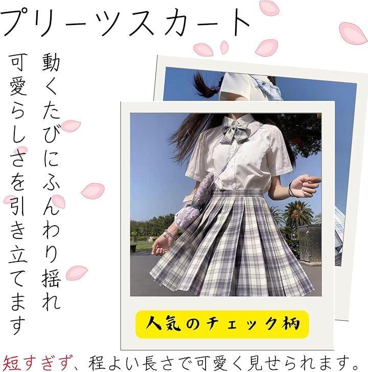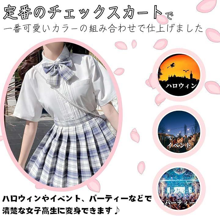 *セット内容:チェック柄プリーツスカート、半袖シャツ、リボン *カラー:ライトブルー、ブルー *サイズ詳細は画像をご確認ください。