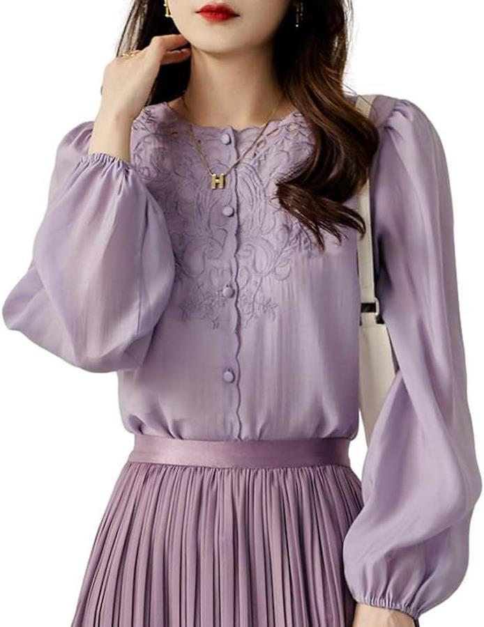 胸元のラグジュアリーな刺繍がエレガントなブラウス。