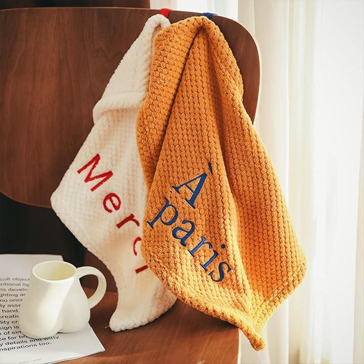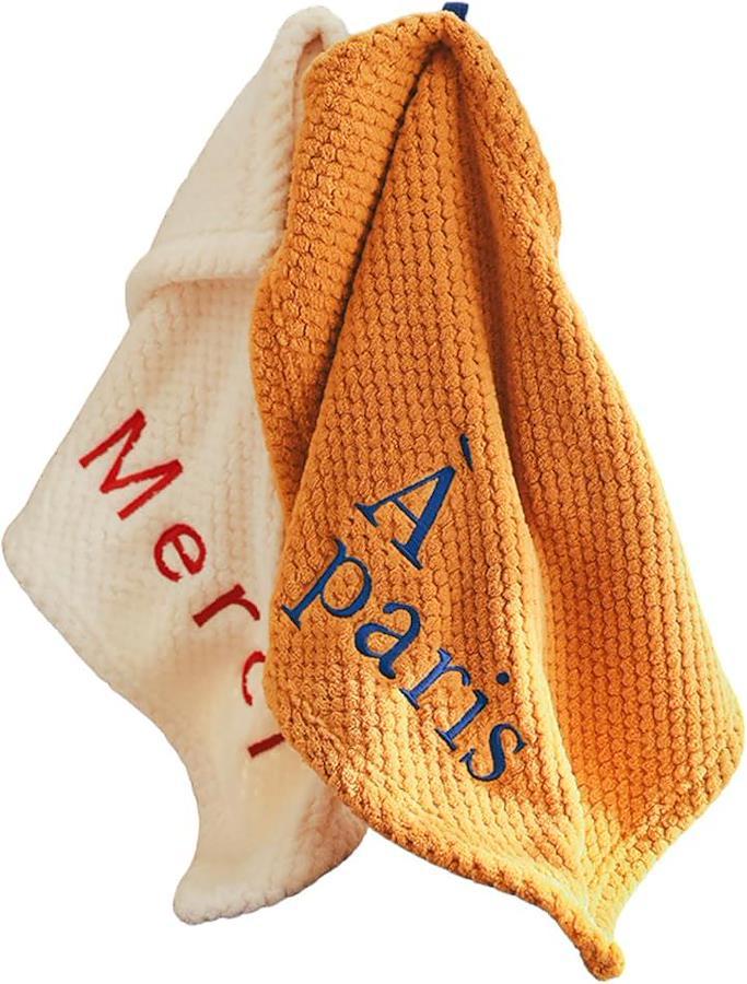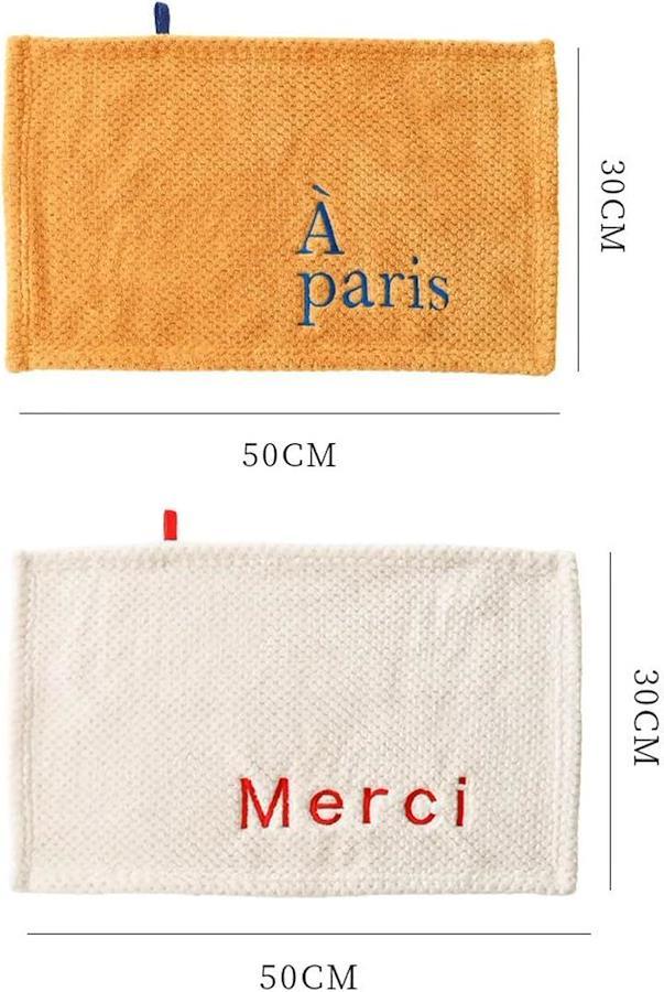 À parisとMerciの刺繍が目を引く、韓国風のかわいいマイクロファイバータオル2枚セットです。