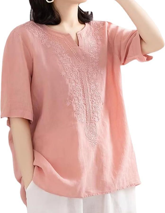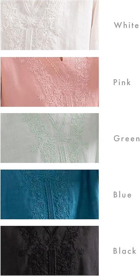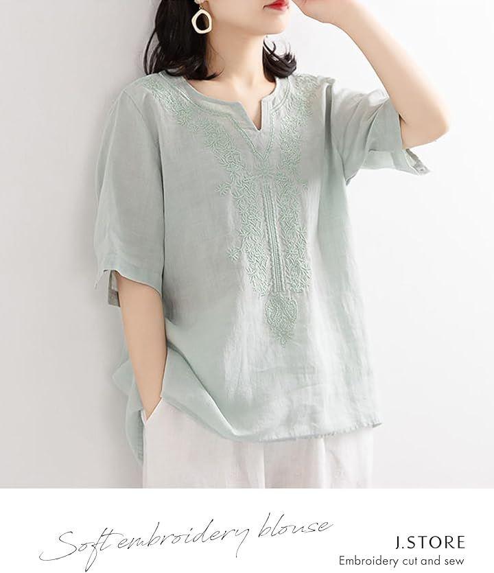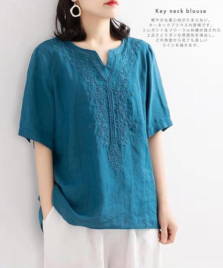 エレガントなフローラル刺繍が施されたキーネックは、上品さとモダンな雰囲気を演出し、どの角度から見ても美しいラインを描きます。
