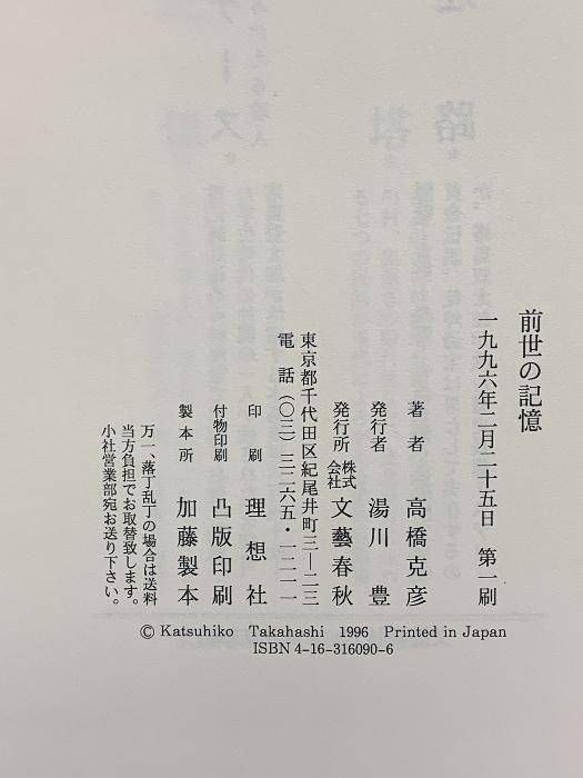 前世の記憶 文藝春秋 高橋 克彦