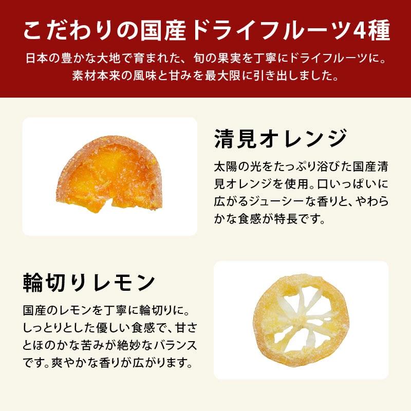 【こだわりの国産ドライフルーツ四種】日本の豊かな大地で育まれた、旬の果実を丁寧にドライフルーツに。素材本来の風味と甘みを最大限に引き出しました。