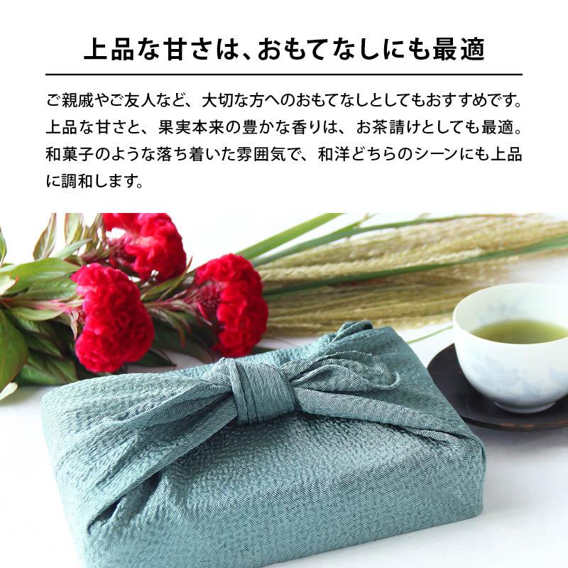 【上品な甘さは、おもてなしにも最適】ご親戚やご友人など、大切な方へのおもてなしとしてもおすすめです。上品な甘さと、果実本来の豊かな香りは、お茶請けとしても最適。和菓子のような落ち着いた雰囲気で、和洋どちらのシーンにも上品に調和します。