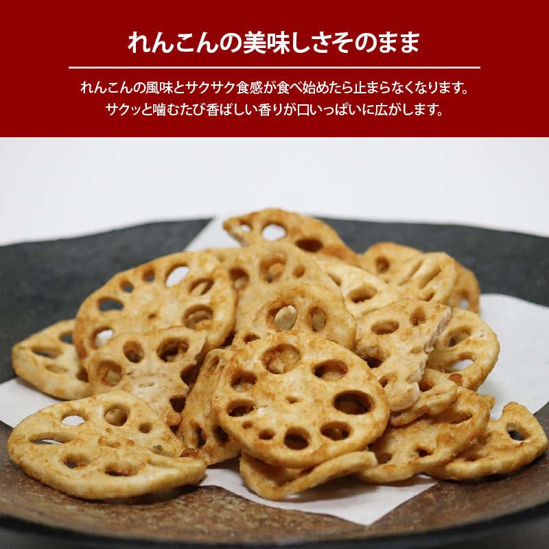 いつでも手軽にれんこんの旨味をまるごと食べる、そんな想いから生まれた商品です。れんこんの風味とサクサク食感で食べ始めたら止まらなくなる美味しさ♪おやつ・おつまみ・トッピングにもサッと使えて便利♪