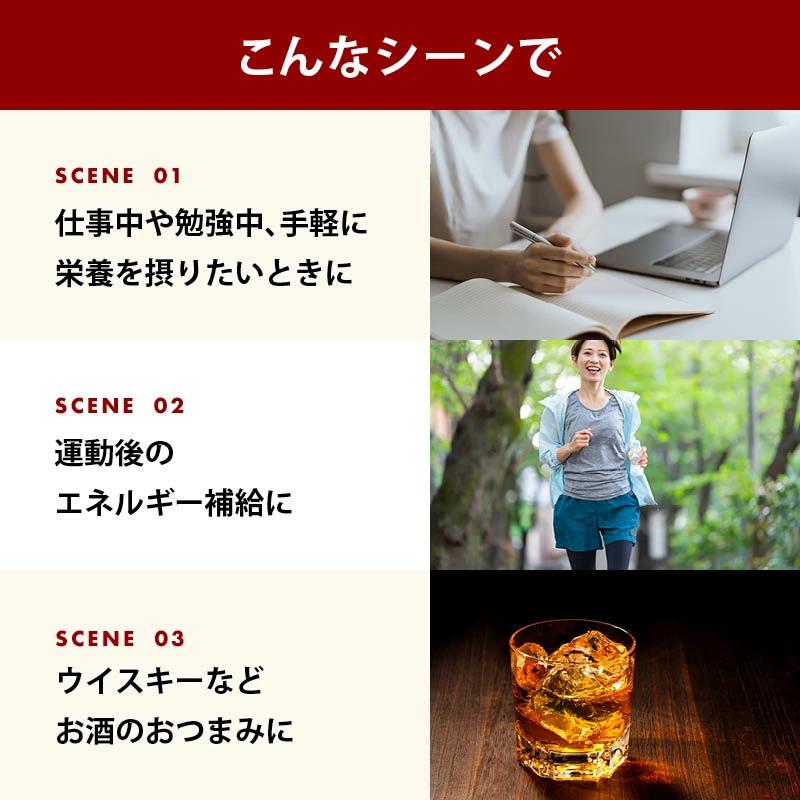 【こんなシーンで】・仕事中や勉強中、手軽に栄養を摂りたいときに・運動後のエネルギー補給に・ウイスキーなどお酒のおつまみに