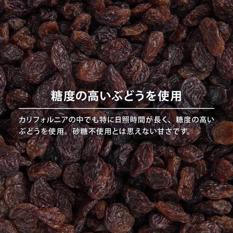 カリフォルニアの豊かな大地と太陽の下で育ったぶどうを使用。自然そのままの甘さと栄養がぎゅっと詰まった一粒一粒が高品質なレーズンです。