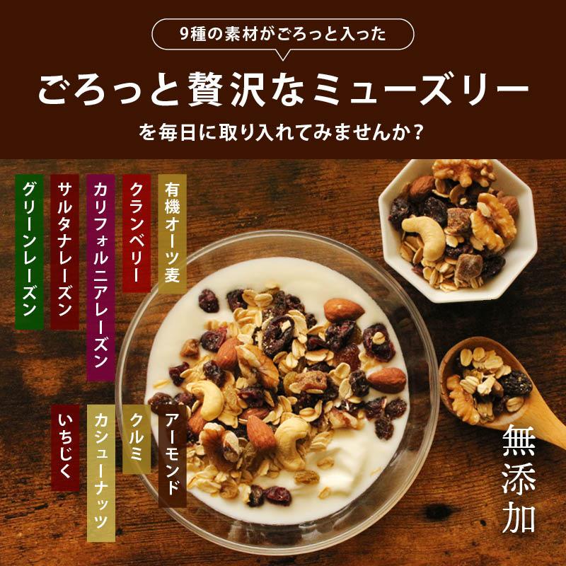 前田家 無添加 ミューズリー まるごとナッツ 有機オーツ麦使用 ナッツ シリアル ロールドオーツ レーズン ドライフルーツ オーガニック 糖質 ダイエット 食物繊維 朝食 グラノーラ
