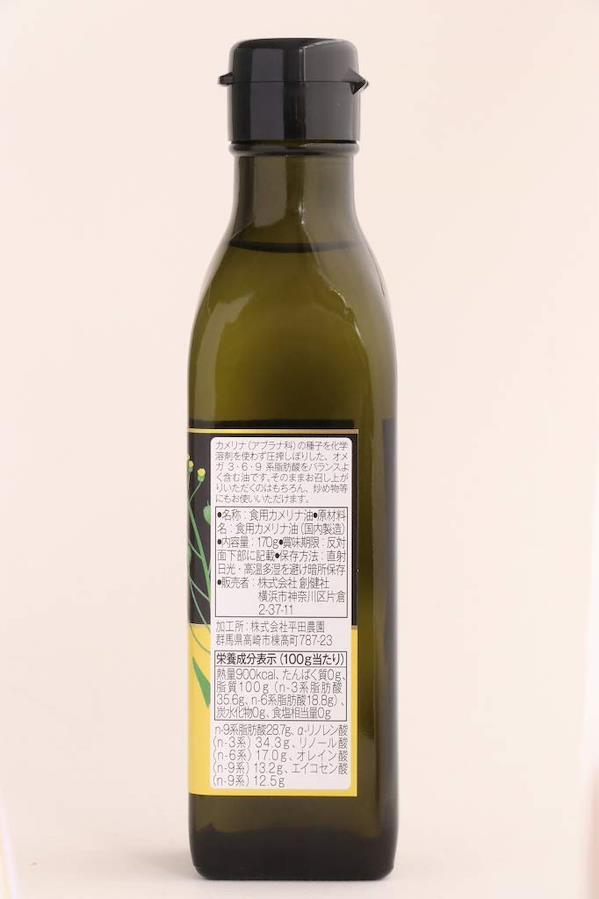 アブラナ科の植物カメリナサディバの種子を圧搾しぼりし、精製することでクセのない味に仕上げたオイルです。