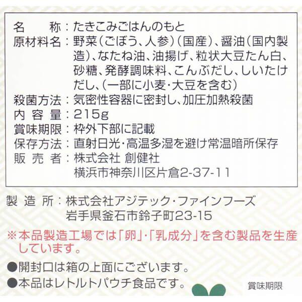 創健社 植物素材でつくった鶏ごぼうめし風炊き込み御飯の素 215g 5個セット