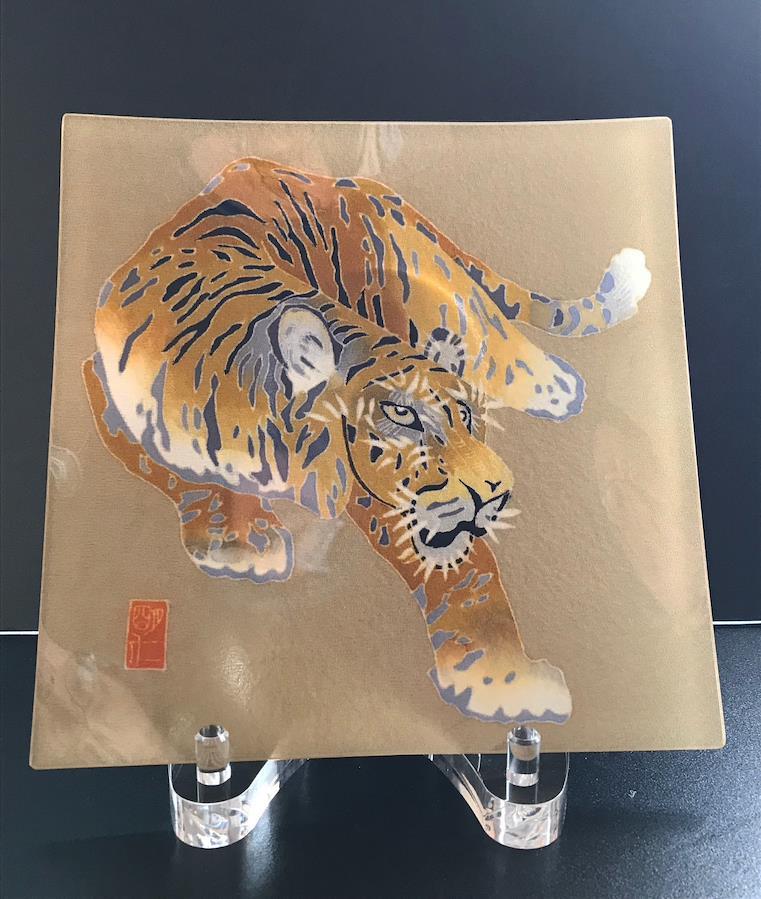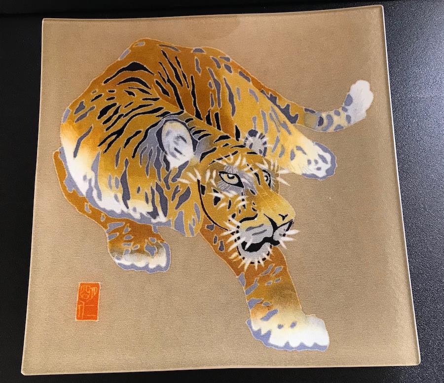 2022年の干支「寅」を加賀友禅で染め上げ、新作ガラスパネルを製作しました。