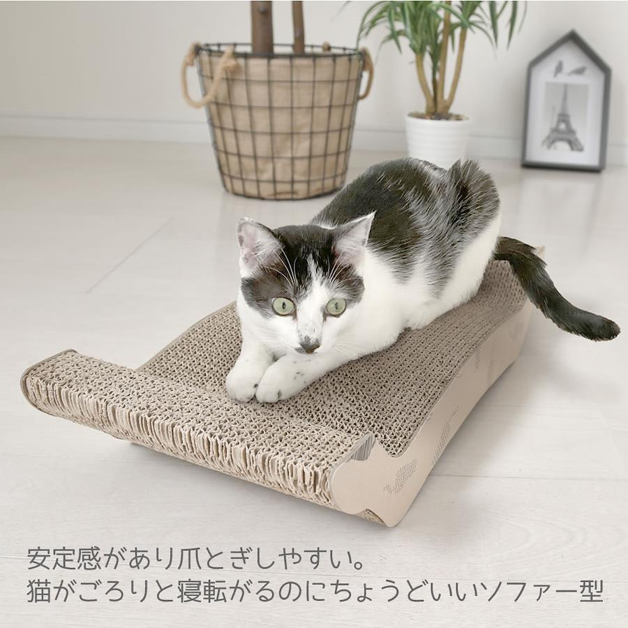 【商品情報】安定感があり爪とぎしやすい。猫がごろりと寝転がるのにちょうどいいソファー型