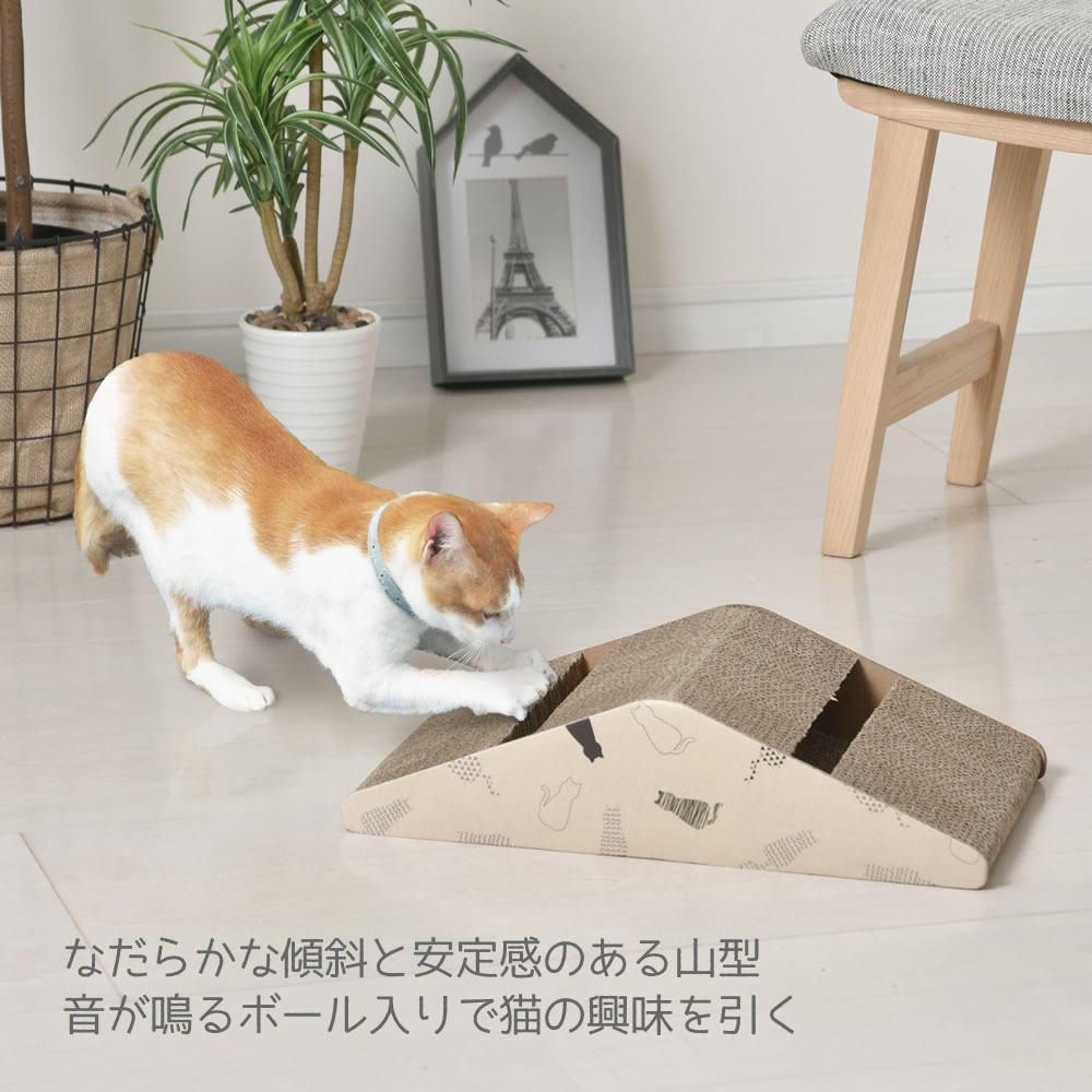 【商品情報】なだらかな傾斜と安定感のある山型音が鳴るボール入りで猫の興味を引く