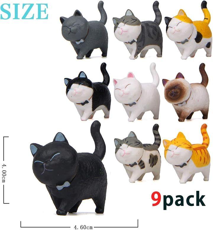 「商品内容」猫フィギュア:9個入 サイズ(約):4x4.6cm / 個 重量(約):17g / 個 素材:PVC *製造工場の生産過程や仕入れ状況によって、一部仕様に変更がある場合がございます。