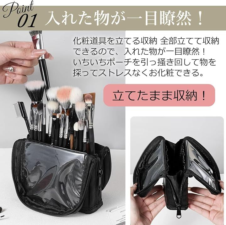 また、化粧道具をすべて立てて収納できるので、入れた物が一目瞭然です。
