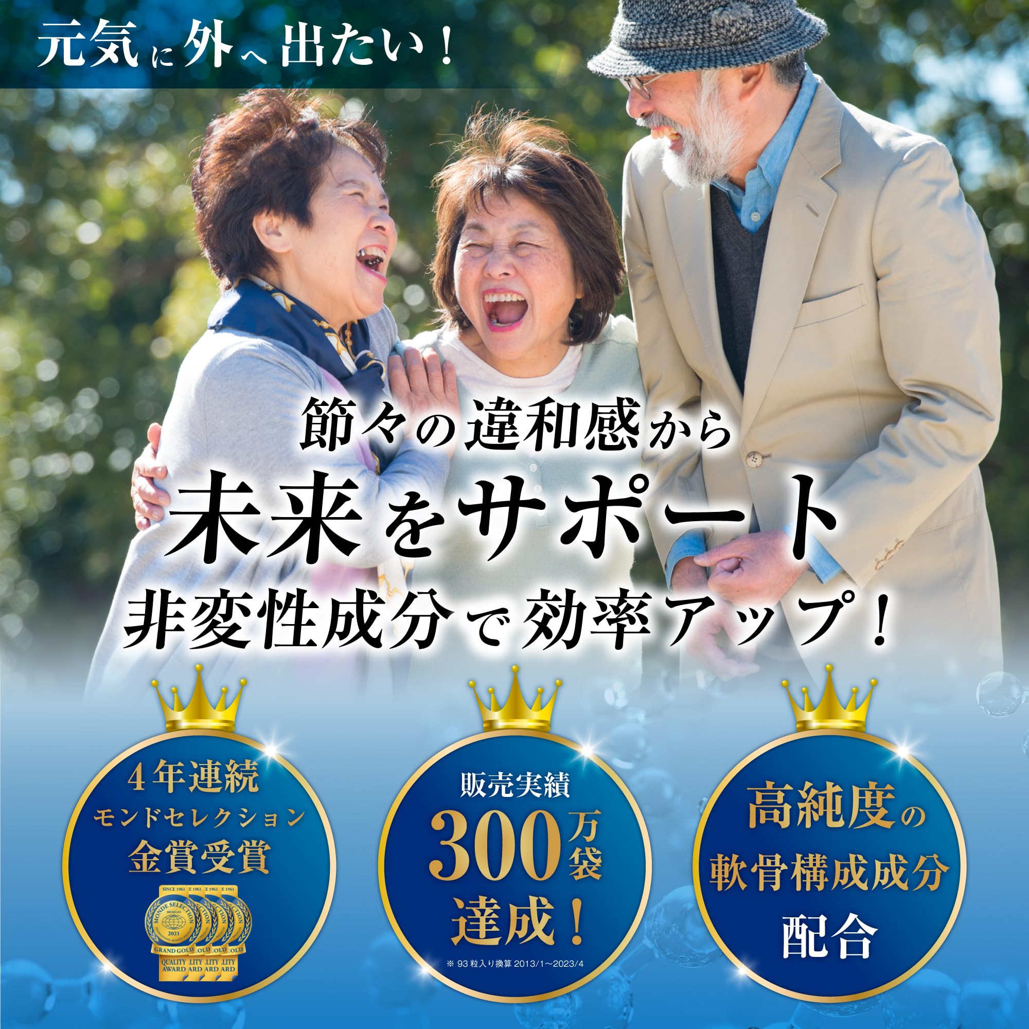 ■サイズ:??21x15.3x2.2cm;120g ?【愛され続けて累計販売数300万袋突破】2013年1月に販売を開始した『北国の恵み』は、愛され続けて「累計販売数が300万袋(※1)を突破」毎日たくさんの方にご愛飲いただいており、「お客様満足度はなんと91%(※2)」多くのお客様から3か月目で健やかな曲げ伸ばしを実感したとお喜びの声をいただいております。※1,93粒入り換算2013/1?2023/5。※2,「北国の恵み」の定期購入で3ヶ月目のお客様から無作為に抽出したお客様を対象にアンケート調査を実施。(2013年5月?6月)n=100 ウェルヴィーナスの「北国の恵み」を「満足」「やや満足」と回答した91名、「やや不満」「不満」と回答した方9名。) ?【プロテオグリカン】軟骨は水分を除くと「プロテオグリカン」と「2型コラーゲン」この2つの成分が約90%を占めています。ふしぶしのサプリといえば「グルコサミン」「コンドロイチン」などはよく耳にすると思いますが、実はそれらは「プロテオグリカン」の一部を構成している成分に過ぎません。それらの成分とは違い、軟骨そのものを構成する主成分である「プロテオグリカン」は、特徴的な形と水を集める特製から弾力と保水力に優れた軟骨成分です。 ?【2型コラーゲン】軟骨の主成分のうち、水分を除き一番多い成分は「2型コラーゲン」。軟骨を支える土台成分となっており、栄養素を留める働きも。『北国の恵み』には、様々な研究結果に基づいて、プロテオグリカンと2型コラーゲンを最適なバランスで配合しております。 ?【軟骨成分以外にもサポート成分をふんだんに配合】『北国の恵み』には、「プロテオグリカン」と「2型コラーゲン」に加え、軟骨成分のうちの1つである「ヒアルロン酸」、さらに筋肉成分として注目されている「イミダゾールジペプチド」含有のチキンエキスをしっかり配合。イミダゾールジペプチドとは動物の筋肉成分で、渡り鳥の羽の付け根などに多く含まれており、毎日の健康をサポートします。 ?【安心の品質管理、安心の世界実績】毎日飲むものだからこそ、安全性にもこだわって徹底的な品質管理を行っております。『北国の恵み』は、厚生労働省のガイドラインに基づいた国内GMP認定工場で品質を管理しております。「北国の恵み」はその品質が認められ、モンドセレクション最高金賞を受賞。※本製品は、GMP製品マークはつけられていませんが、GMP認定工場(認定番号11105)で製造されました。認定期間 2020年7月29日~2023年7月28日。さらに、確かな品質は世界的にも認められ、”モンドセレクション最高金賞”を2020年・2021年と連続で受賞しました。 " ■重要なお知らせ安全上のお知らせ植物アレルギーのある方は、原材料名をご確認のうえ、ご使用をお決め下さい。原材料・成分還元麦芽糖水飴、デキストリン、ボスウェリアセラタ樹脂抽出物、キャッツクロー抽出物、鮭鼻軟骨抽出物(非変性プロテオグリカン、非変性Ⅱ型コラーゲン含有)、チキンエキス(イミダゾールジペプチド15%含有)、ビール酵母(セレン含有)、セイヨウシロヤナギ抽出物、セルロース、ステアリン酸Ca、微粒酸化ケイ素、抽出ビタミンE、ヒアルロン酸、ビタミンB1、ビタミンB6、ビタミンD、ビタミンB12※植物由来原料を使用しているため、錠剤の表面に茶色斑点が出ることがありますが、品質には問題ありません。使用方法1日当たり3粒を目安に水またはぬるま湯などでお召し上がりください。