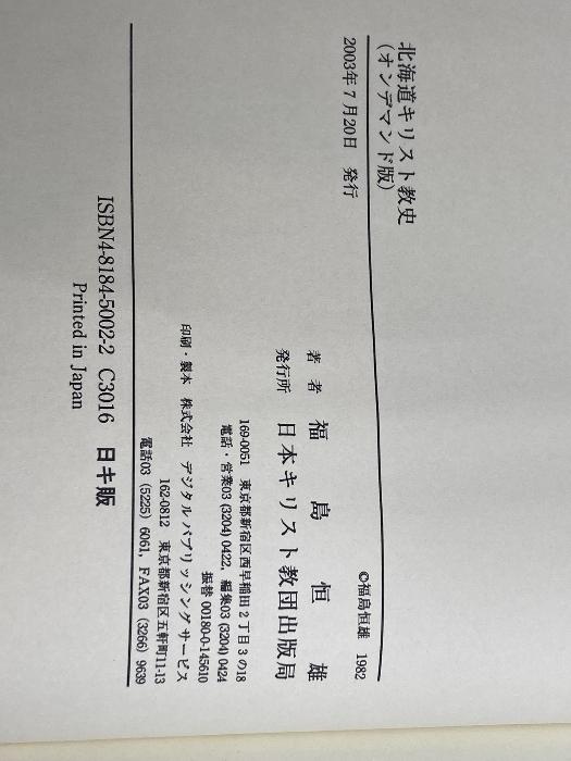 商品名:北海道キリスト教史 オンデマンド版 福島恒雄 日本基督教団出版局