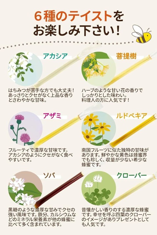 一種類の花から丁寧に採れた単花蜜だからその花本来の純粋な美味しさとそれぞれの花が持つ特有の香りがスティック一本にギュっと詰まっています。