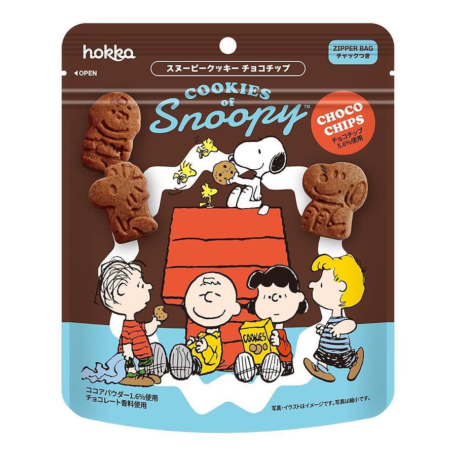 ピーナッツ仲間たちがサクサクなチョコチップクッキーになりました。スヌーピーをはじめとするピーナッツの人気キャラクターのかたちをしたチョコチップ味のクッキーです。チャック付きスタンドパックパッケージなので、携帯してお召し上がりいただけます。クッキーの形は全17種。17種類のうちいずれかが入っております。