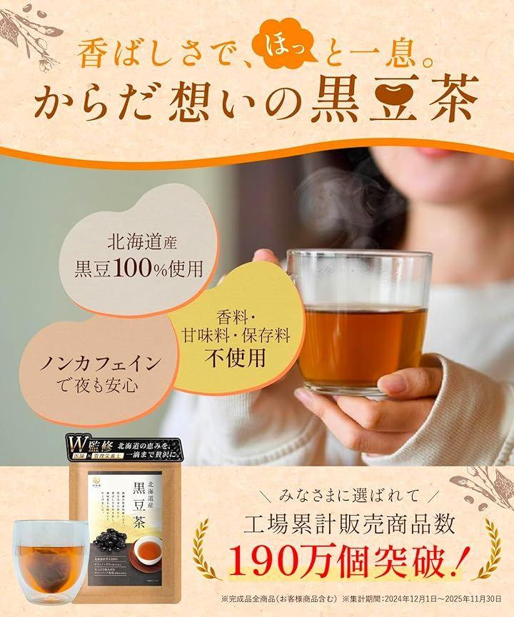 「香ばしさで整う、こころほどける和の健康茶」北海道の自然が育んだ黒大豆を、品質にこだわって丁寧に加工。