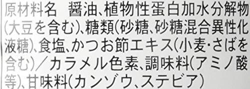 醤油、植物蛋白加水分解物、糖類(砂糖、砂糖混合異性化液糖)、食塩、かつお節エキス、カラメル色素、調味料(アミノ酸等)、甘味料(カンゾウ、ステビア)