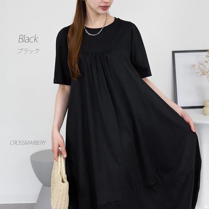 半袖デザインでロングシーズン着回しやすく、カジュアルからきれいめまで幅広いスタイリングに対応するロングワンピース。