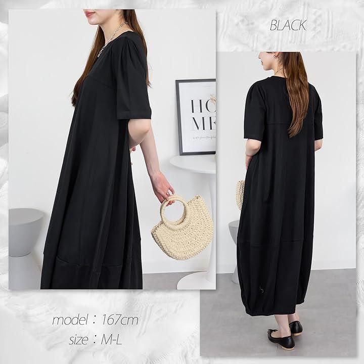 オンオフ使えてコーデの幅が広がる半袖バルーンロングワンピース。