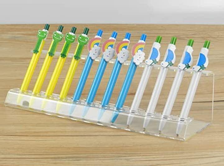 鉛筆、ボールペン、サインペン、マーカーなどを斜めにおけるアクリル製卓上ペン立てです。