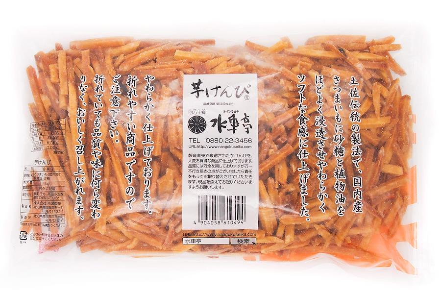 昔ながらの甘味芋けんぴ。高知県伝統菓子の製法を取り入れ、素揚げした後、砂糖と食油を浸透させて仕上げています。 1本1本、しっかりお芋の味がして、ほどよい歯ごたえと満足感がある太さ・長さとなるよう、厳選した品質の国内産さつま芋(宮崎産)をスティック状にカットしています。当社オリジナルのブレンド食油で素揚げした後、蜜をコーティングしました。【重要】メーカーによる商品リニューアルに伴いパッケージ(内容量も含む)変更が行われた場合、新パッケージでお届け致します事ご了承願います。