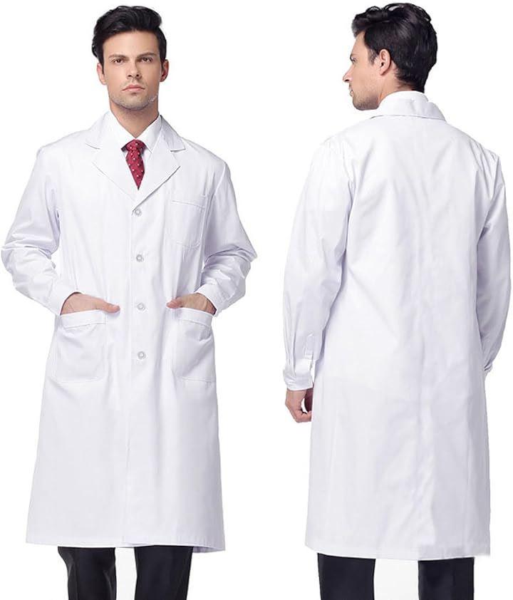 「実験用白衣 コスチューム メンズ」 シンプルな博士風の白衣デザインで、科学者や研究者風のコスプレにぴったり。