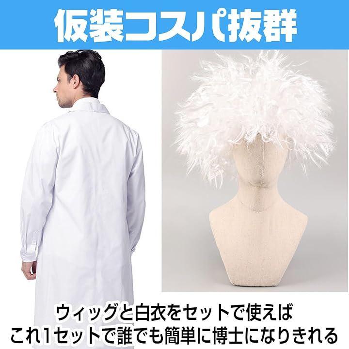 博士 コスプレ 白髪 かつら ハロウィン おもしろ 実験用白衣 メンズ コスチューム 仮装