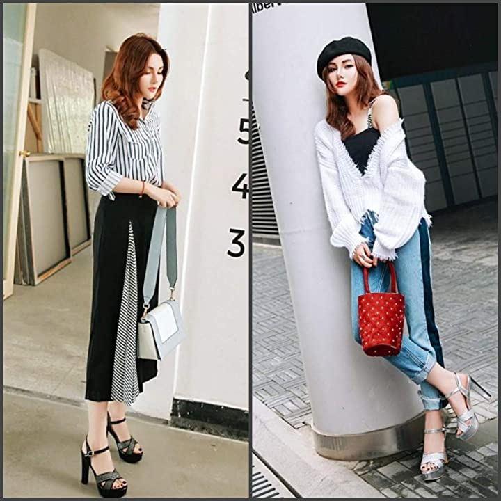 ・スタイリッシュですらっとした足のラインをアピールしてくれる厚底仕様と細身のきれいなハイヒールは スキがないセクシーな後ろ姿をアピールできます。・シンプルデザイン+きらきらグリッター仕様の厚底サンダルは普段のきれいめコーデにはもちろん、結婚式、パーティなどでも 大活躍する1足です。