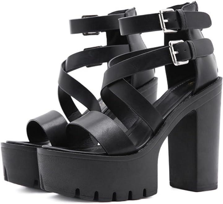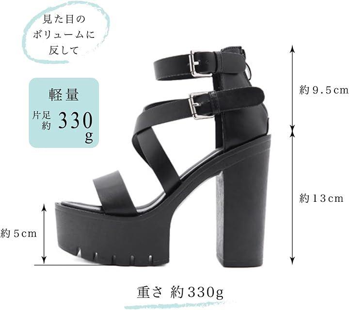 厚底サンダル レディース 黒 ハイヒール ストラップ ホールド セクシー 2 24.0
