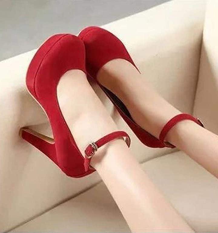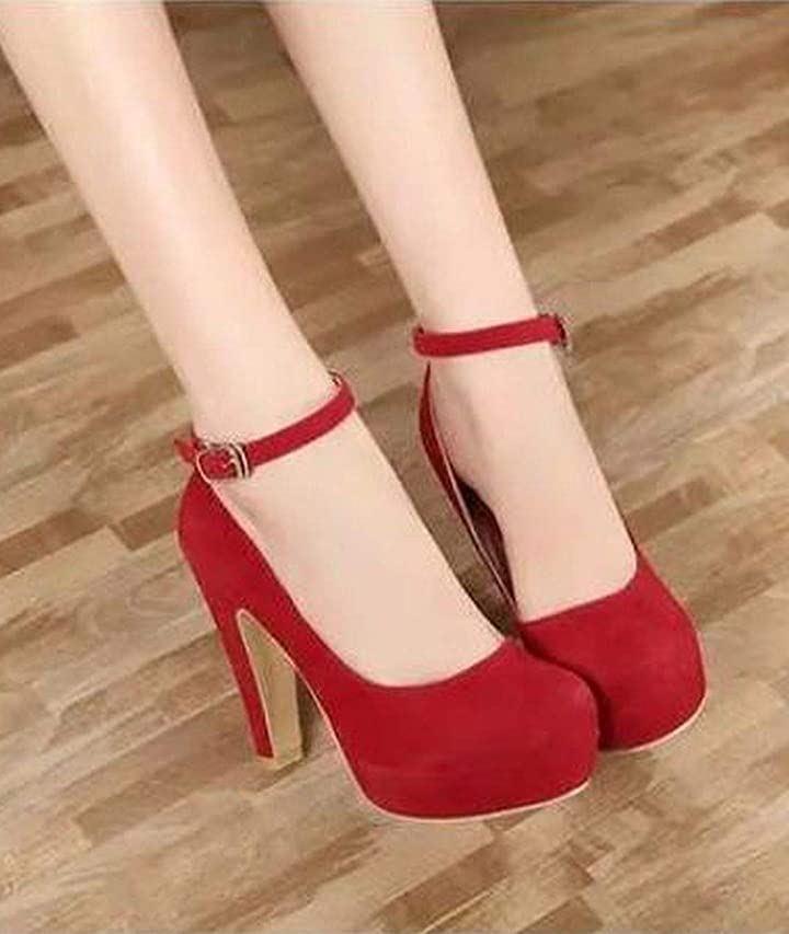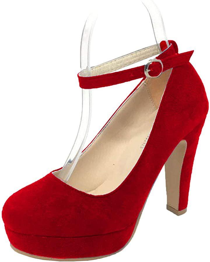 厚底 アンクル ストラップ 付き パンプス ハイヒール 高め ラウンドトゥ 太め レディース キャバ 25.5cm