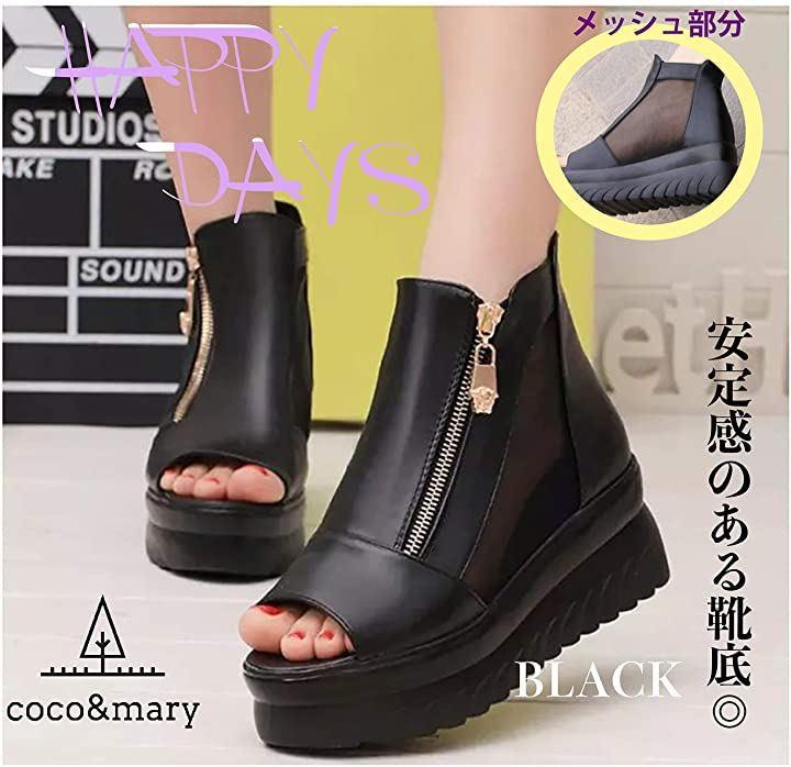 サイドがメッシュ素材で涼しげ*オープントゥでおしゃれな足元を演出。