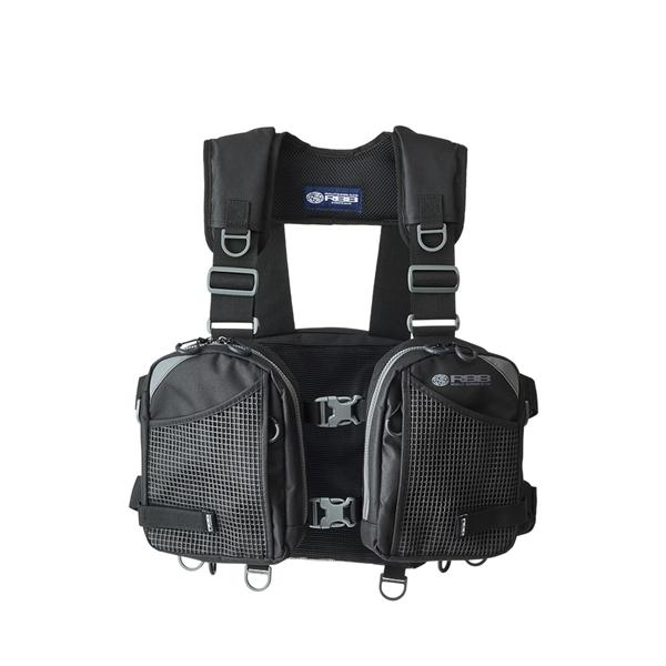 収納力と快適性を兼ね備えたサーフ用ゲームベスト。夏場の使用を想定し裏生地は通気性を確保するメッシュ仕様。本体は摩耗、引裂きなど耐久性に優れた高密度ポリエステル。ファスナー開閉がスムーズに行えるラウンド型フロントポケット。左右ポケット:VS-3010NDM×2 計4ケース収納可能。ポケットファスナーは錆や腐食に強いビスロンファスナー。肩への負担を軽減する大型肩パット。着用時にサイズ調整しやすい左右各2本のサイドベルト。大容量の背面ポケット。サーフサポーターと組み合わせで収納力UP。*RBBエアーライフポーチなど膨張式ライフベストを併用してください。 サイズ:フリー カラー:ブラック 素材:ポリエステル100% ※実物と色が違って見える場合があります。あらかじめご了承下さい。