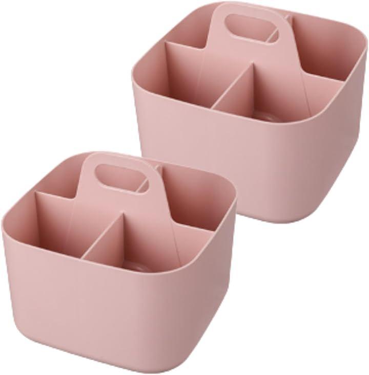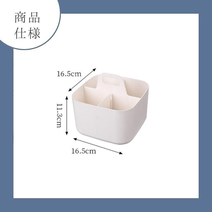 4つの仕切り付きで、文房具やアクセサリー、キッチン用品などを分類しやすく、重ねて使えるデザインで省スペース収納が可能。