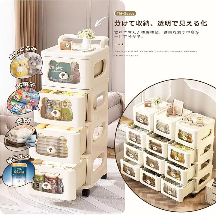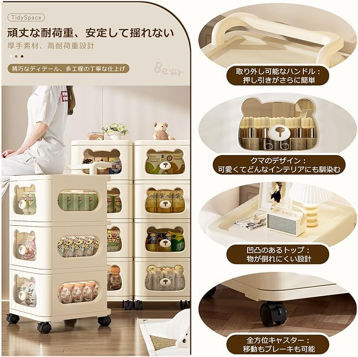 積み重ね式の構造により、必要に応じて自由に段数を増減でき、整理整頓がより簡単になります。