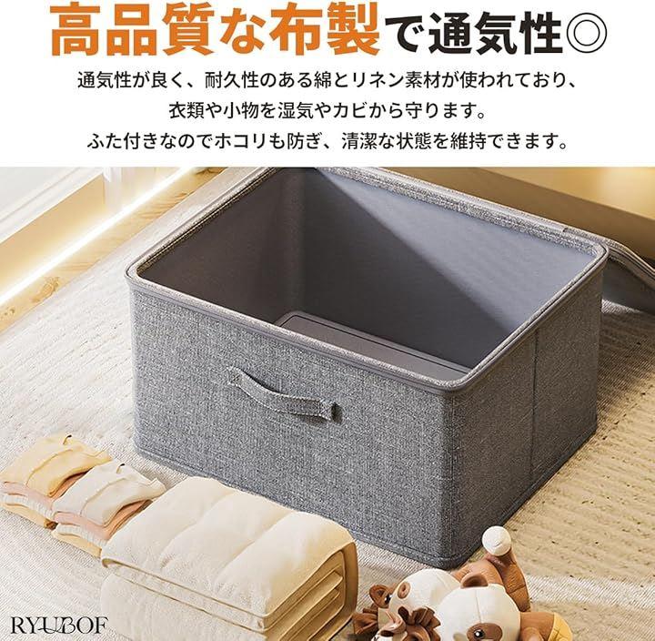 「防カビ・防湿・防塵機能」 収納ボックスには、通気性が良く、耐久性のある綿とリネン素材が使われており、衣類や小物を湿気やカビから守ります。