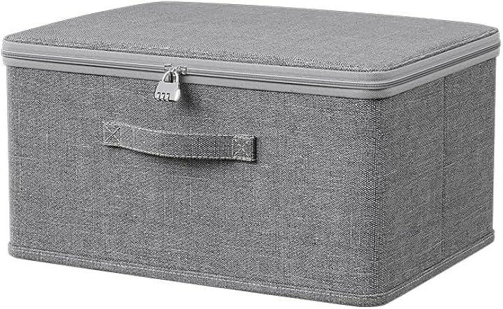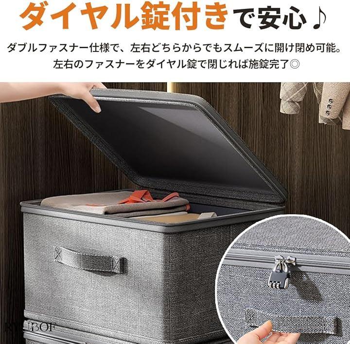 「高品質素材とセキュリティ機能」 この収納ボックスは、通気性に優れた高品質な素材で作られており、衣類や毛布、布団などを湿気やホコリからしっかり守ります。