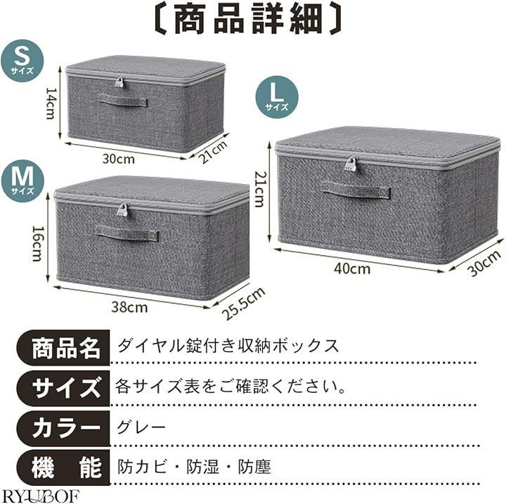 「豊富なサイズで多用途対応」 この収納ボックスは、3種類のサイズ(S:30x21x14cm、M:38x25.5x16cm、L:40x30x21cm)を展開。