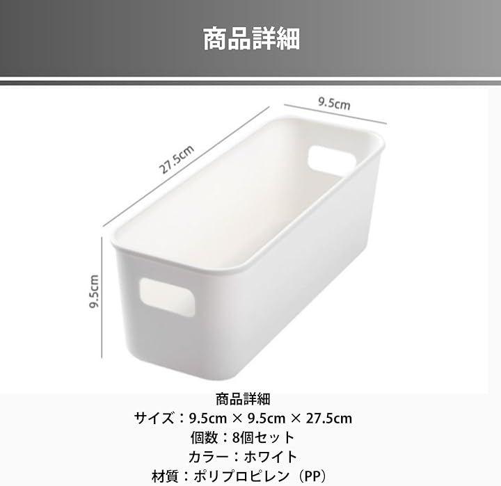 「商品仕様」 サイズ:9.5cm x 9.5cm x 27.5cm 個数:8個セット カラー:ホワイト 材質:ポリプロピレン(PP)