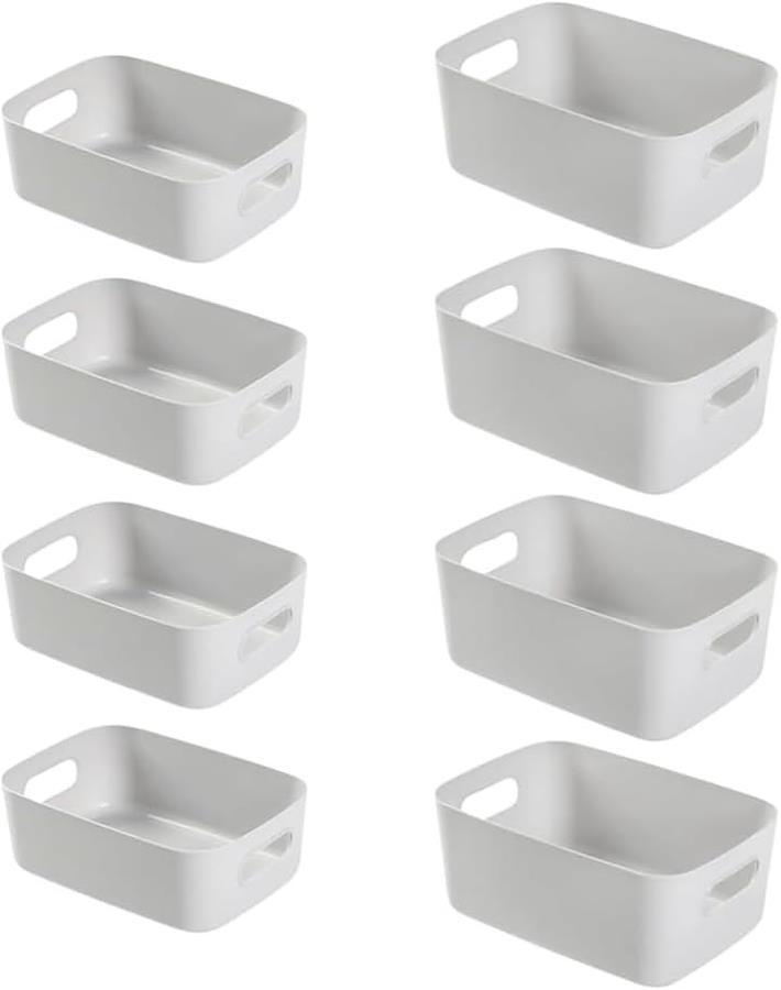 「商品詳細」サイズ:小 20cmx14cmx7cm(4個) 大 24.5cmx16.5cmx10cm(4個)、重量:810g、素材:プラスチック、色:ホワイト、グレー、ピンク、パッケージ内容:小サイズx4個セット、大サイズx4個セット