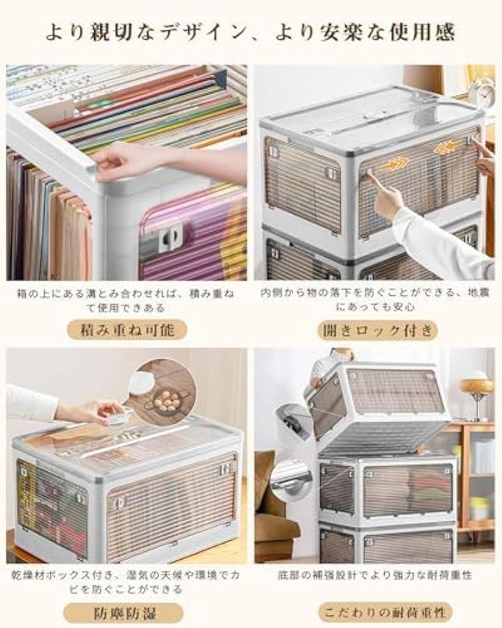 スペースを節約して、日常の衣類や本やおもちゃ食品などの物は折り畳みコンテナに置いて、ふたを閉めれば、ホコリ防止、防塵・防カビ・防湿・防虫ができます。